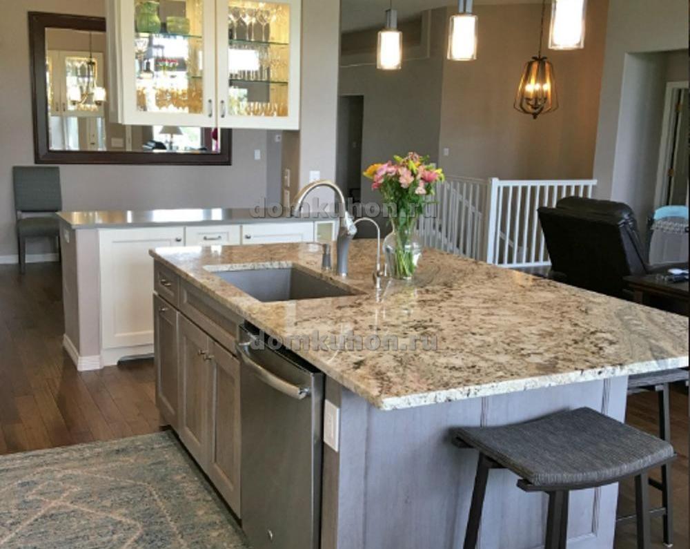 Представляем вашему вниманию кухонный гарнитур "Силур" — истинное воплощение элегантности и функциональности. Этот изысканный островной набор мебели предлагает гладкие белые фасады, дополненные нежно-серым островом, создавая атмосферу света и пространства. Гранитные столешницы с натуральными мраморными узорами в сочетании с современной техникой из нержавеющей стали отражают современные тенденции дизайна и обеспечивают долговечность. Подвесные светильники добавляют шарма, а встроенные шкафы и выдвижные ящики обеспечивают вместительность и удобство. Выберите кухню "Силур" для создания сердца вашего дома, где красота и комфорт сливаются воедино.